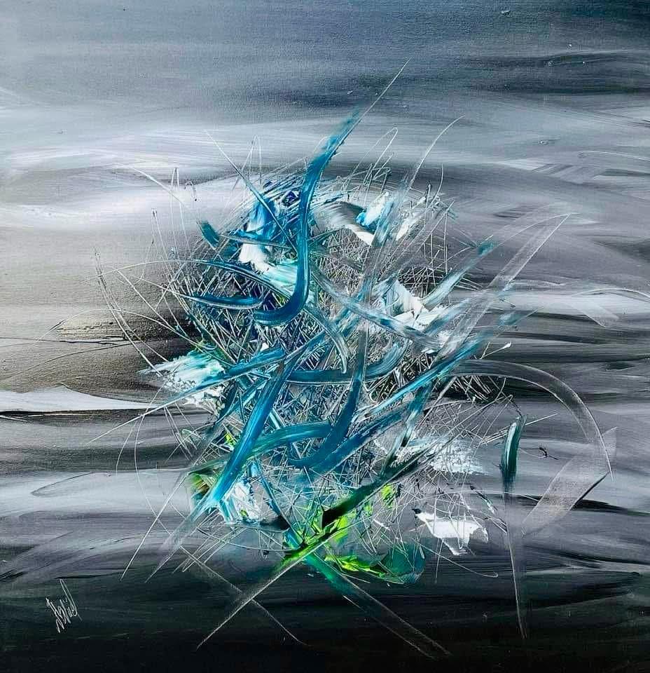 Ses œuvres, abstraites ou figuratives, mêlent l’acrylique, les textures et les matières dans une quête constante d’expression libre.